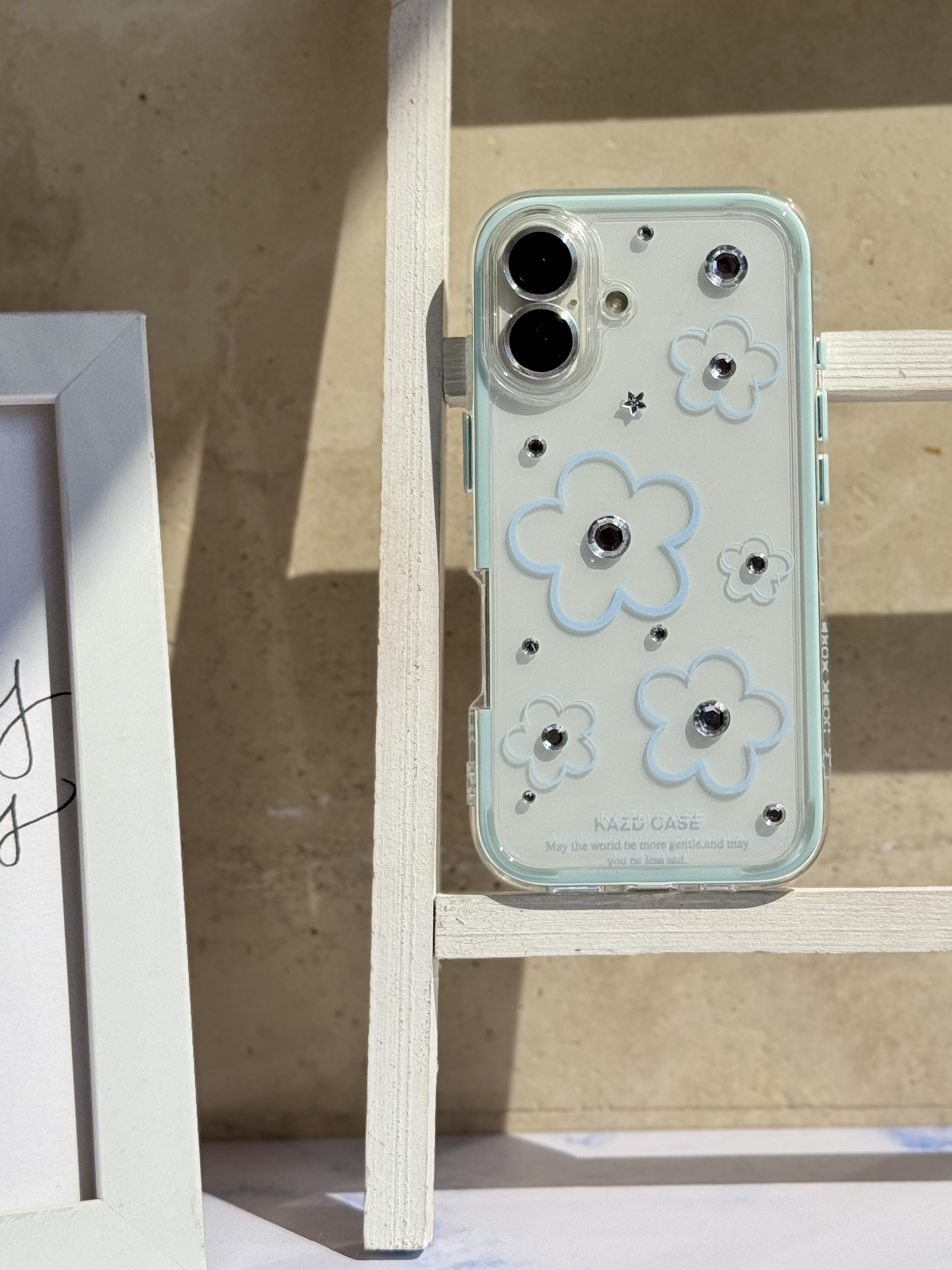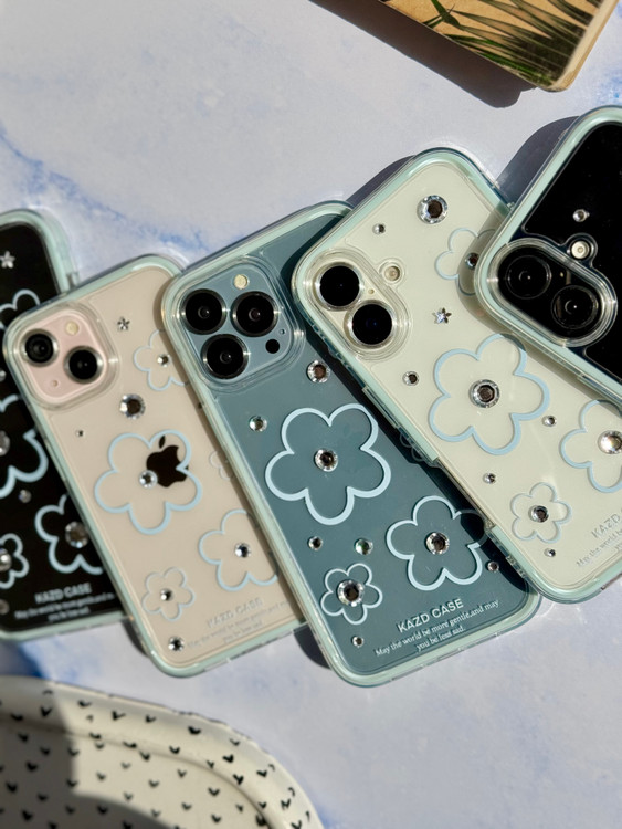 این قاب جذاب با طراحی منحصر به فرد گلهای آبی و نگینهای درخشان، جلوهای خاص به گوشی شما میبخشد. ✨