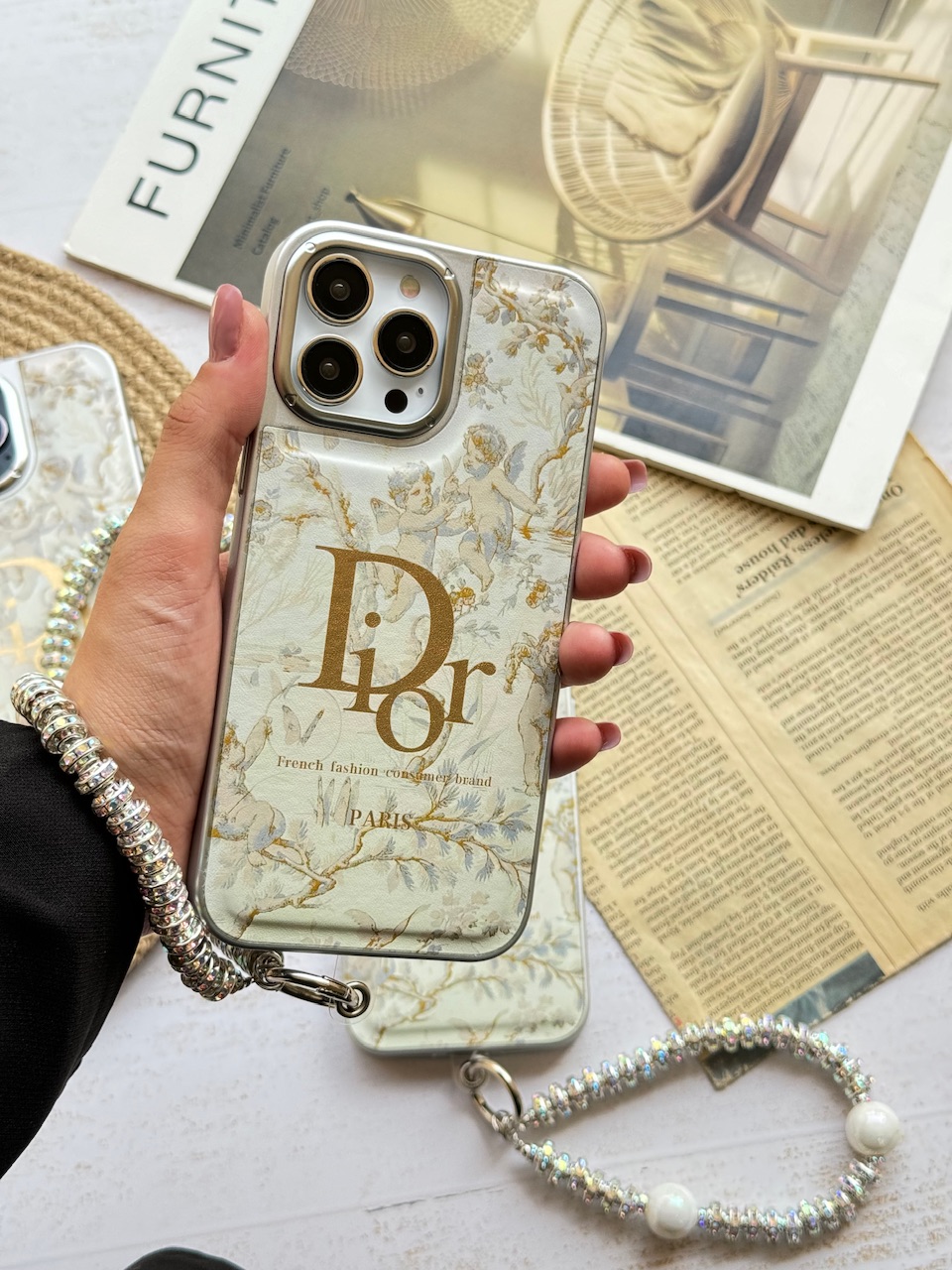 این قاب لوکس و جذاب با طرح برند محبوب Dior، انتخابی خاص برای کسانی است که به دنبال استایل و محافظت همزمان هستند. لبههای این قاب از جنس کروم براق ساخته شده که جلوهای خیرهکننده به گوشی شما میبخشد.