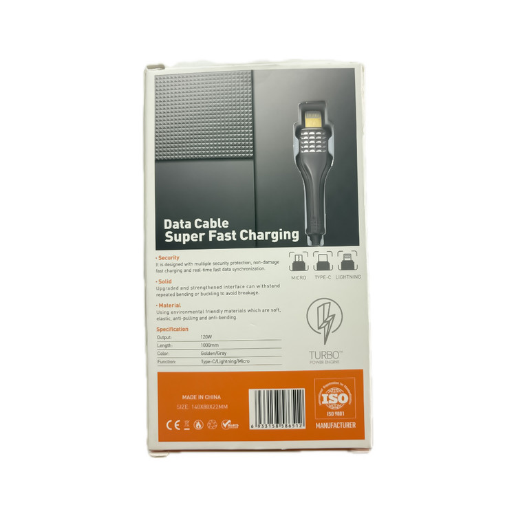 سوپر کابل usb به lightning شرکتی 120 وات ساپورت