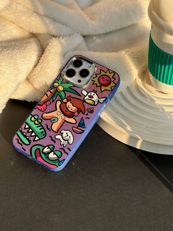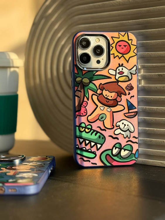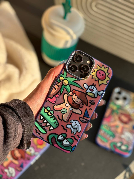 قاب فانتزی انسان های اولیه با طرح هلوگرامی که با تغییر زاویه برخورد نور با پشت گوشی رنگ قاب تغییر میکه