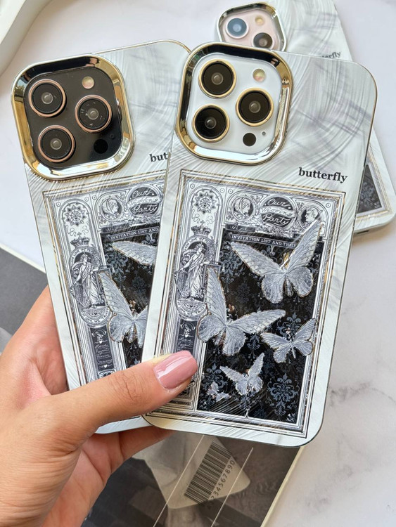 قاب پروانه سیاه و سفید یکی از قاب های فانتزی ودر عین حال محکم برای گوشی آیفون با طراحی شاسی موج دار میباشد